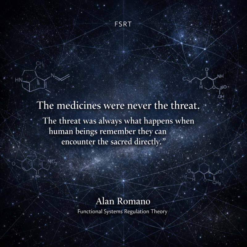 Throughout history, many societies appear to have gradually restricted or eliminated widespread access to psychoactive sacraments. In many traditions, direct mystical experience became mediated through institutions such as organized religion. Instead of encountering the sacred directly, individuals were encouraged to encounter it through doctrine, clergy, ritual hierarchy, and interpretation. From a Functional Systems Regulation Theory perspective, this shift has profound implications.